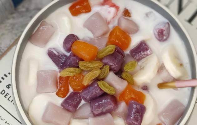 筆者以芋頭,紫薯,紅薯3種主料,搭配木薯粉和酸奶做成瞭一款人見人愛的甜品美食。
