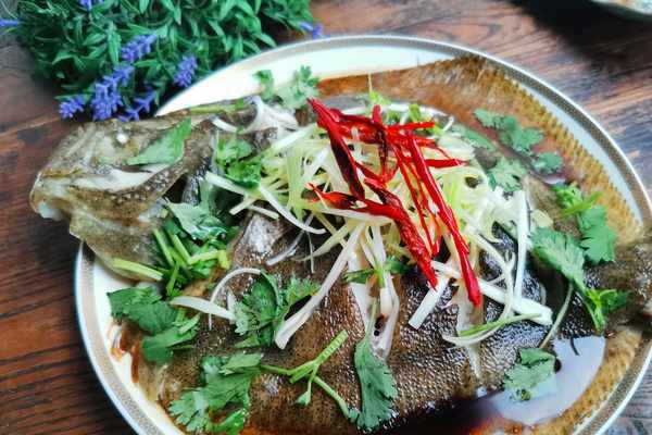 【清蒸多寶魚】所需材料:多寶魚1條、香菜1棵、油鹽適量、葱2棵、薑1塊、幹辣椒2-3個、料酒1湯匙、蒸魚豉油2湯匙、