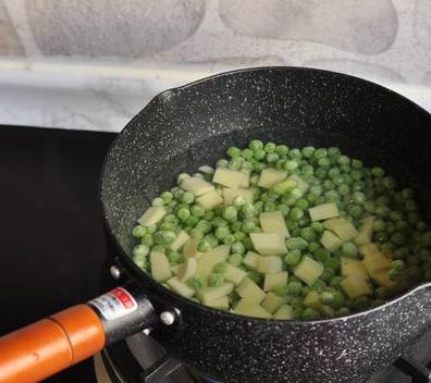 3.冷凍豌豆和土豆直接扔進涼水鍋中煮沸