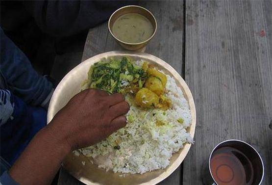 印度的早餐。很多印度傢庭的早餐就是一杯茶加上手抓飯,沒錯,他們早餐也是用手抓。至於他們的菜,估計也是比較傢常的吧。