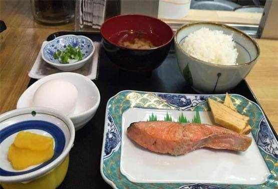 日本的早餐。日本的早餐顯得品種繁多而又簡單,而且他們有一種奇怪的吃法,生雞蛋拌飯,你能接受嗎?不過這一大塊烤魚確是格外健康。