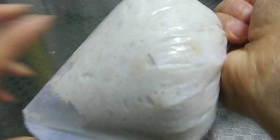 3、裝入裱花袋裡備用,我用的是普通的塑料袋,用著也很方便的。