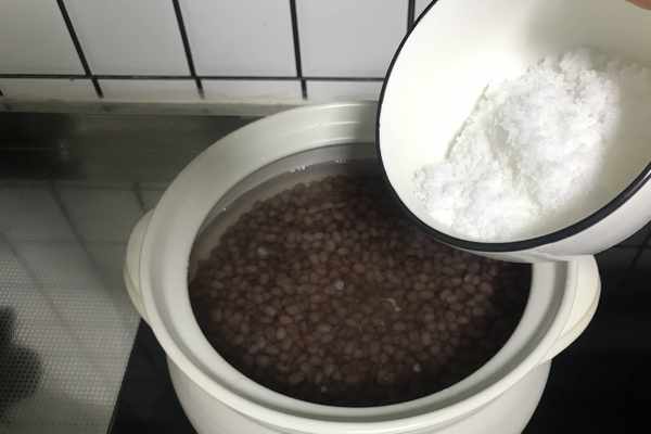 13、在紅豆中倒入糖100克,如果是紅糖更好,蜜紅豆的顏色會更有顏值。