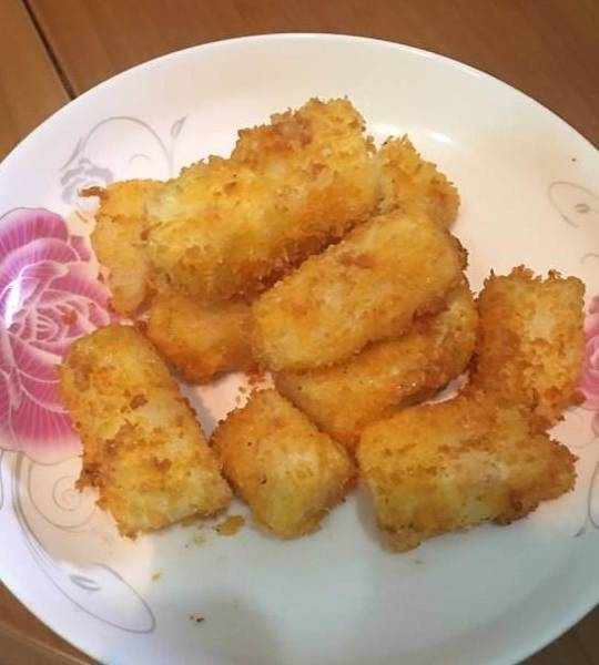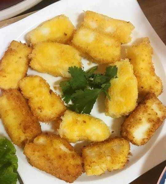 用料:純牛奶500克、白糖50克、玉米淀粉50克、雞蛋2個、花生油適量(炸牛奶用)