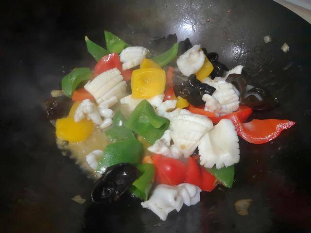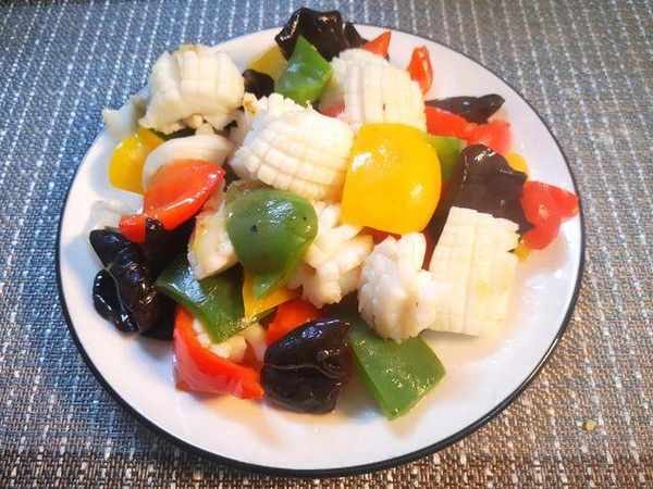 墨魚的吃法有多種,很喜歡海邊朋友拿手的咸菜炒墨魚,那個鮮美也是吃瞭讓人難忘,開胃又下飯。最喜歡吃的還是墨魚炒青椒,鮮嫩滑爽,非常鮮美。今天我就用彩椒做一份木耳炒墨魚。話說炒墨魚這個活,其實很不容易做的。一不小心就炒老瞭,墨魚雖然好吃,但是要炒得嫩,也是有很多竅門的。下面我們一起來看看這個墨魚炒青椒的具體做法吧:彩椒炒墨魚 準備材料:新鮮墨魚1隻,青椒、紅椒和黃椒各1/4個、黑木耳適量、黃酒適量、鹽少許、胡椒粉少許、濕淀粉適量、魚露少許。
