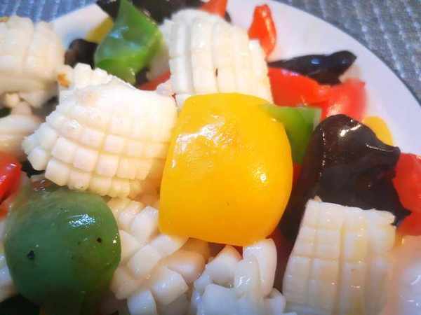 這道色彩斑斕,顏色亮麗的彩椒木耳炒墨魚出鍋啦,墨魚滑嫩Q彈,鮮美脆爽,是不錯的下酒菜。這樣做的墨魚卷,非常鮮嫩。下面分享一下操作要點: