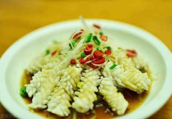 青椒炒墨魚,還是雪菜炒墨魚,您更喜歡哪一款呢?墨魚也叫烏賊、墨鬥魚,它不但口味鮮嫩爽口,也有很高的營養價值。墨魚含有豐富的蛋白質、脂肪、維生素B1、b2和鈣、磷、鐵等成分,是老少皆宜的一款海鮮。每年春節的菜單上,一出現墨魚炒青椒,我的口水就要流出來啦,因為這道菜真的是太鮮瞭。每年的除夕夜,吃完年夜飯,剩下幾片青椒和墨魚花,放在雞湯煲裡,煮一下,香氣撲鼻,雞湯會變得更加鮮美,這種復合的味道,真是不可多得的美食哦。