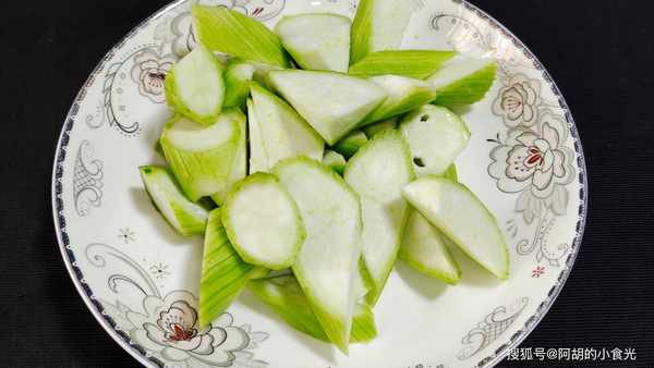 第一步: 絲瓜一根洗幹凈後去皮,而後直接切成滾刀塊,你也可以剖開以後按照傢中盤子大小切成小長條備用。