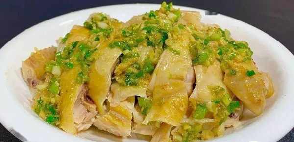 4、時間到瞭,拿根筷子紮一下,沒有冒出血水就證明雞已經熟瞭,把雞放涼後切成小塊,擺入盤中,最後再把蘸料淋在雞身上就可以啦。