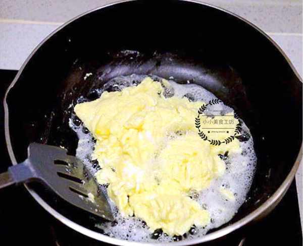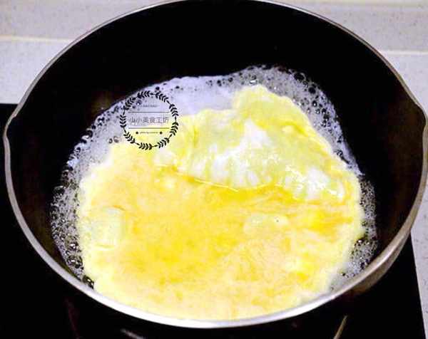 3、待蛋液底部凝固後,用鍋鏟輕輕翻面,繼續炒制直到水分收幹即可盛盤。