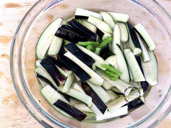 1、將茄子和苦瓜清洗幹凈,切成小條,然後放入鹽水中浸泡片刻。