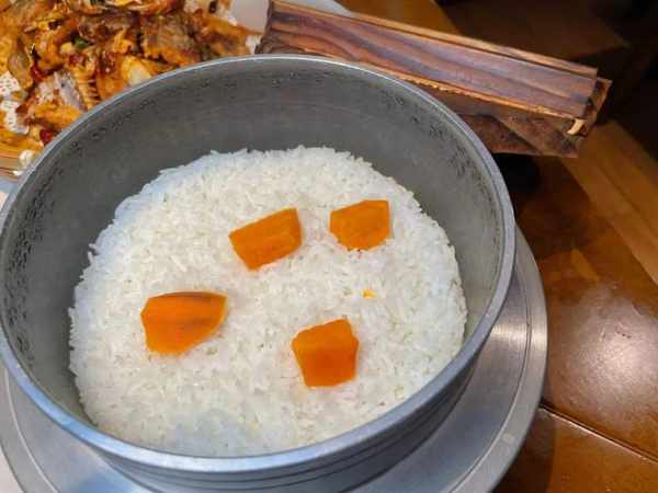 伴隨著“咕嘟咕嘟”的聲音,吃一口肉肉,緊實而不失嚼勁,香辣入味,一勺濃濃的湯汁拌在米飯上,配上揪耳朵鹽菜,連吃三大碗飯都沒問題。
