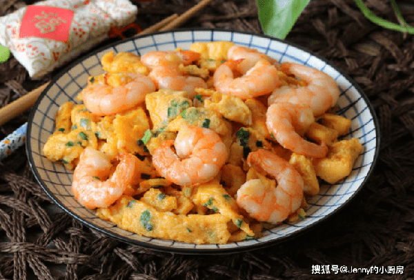 鍋內加油,量多一些,燒熱後倒入蛋液,炒成小塊盛出,再倒入蝦仁煎到變色。