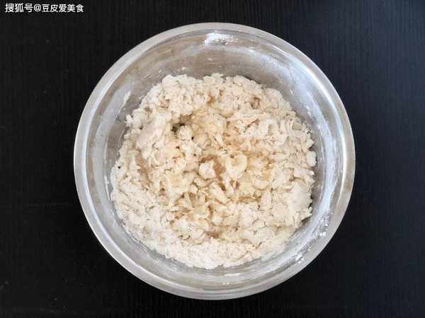 1、把中筋面粉、泡打粉、酵母粉和細砂糖一起放入盆裡,攪拌均勻,再慢慢加入溫水,攪拌成絮狀,再加入玉米油,用手揉成光滑的面團。