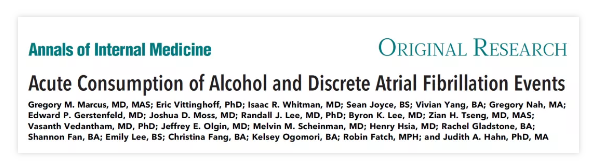 2021年8月31日,一項發表在內科醫學頂級期刊《內科醫學年鑒》上的美國研究發現,僅僅飲用一杯葡萄酒,就會迅速且顯著增加飲酒者的房顫風險。