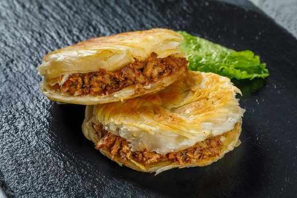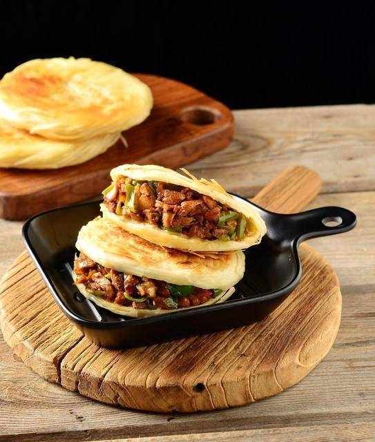兩種肉夾饃有什麼不同呢,白吉饃是要用半發酵面制成,在和面時加些清油,以防粘住且醒面要醒足半小時。因為白吉饃是一種發面膜,所以在制作肉夾饃的時候就需要把饃放在烤爐上進行重新加熱,使其口感更舒適,熱好饃後在切開,放入肉。這樣外脆內軟,脆而不硬。而酥皮肉夾饃則是和它的名稱一樣通俗易懂,表皮炸得金黃酥脆,把肉放進去一口咬下去得到瞭極大的滿足,饃的酥脆和肉的味道結合起來,真是一道使人難以忘卻的美食。