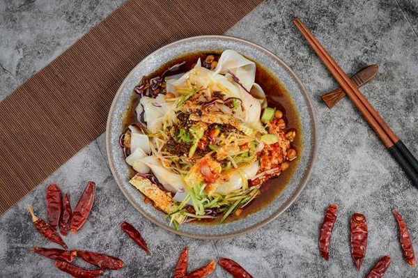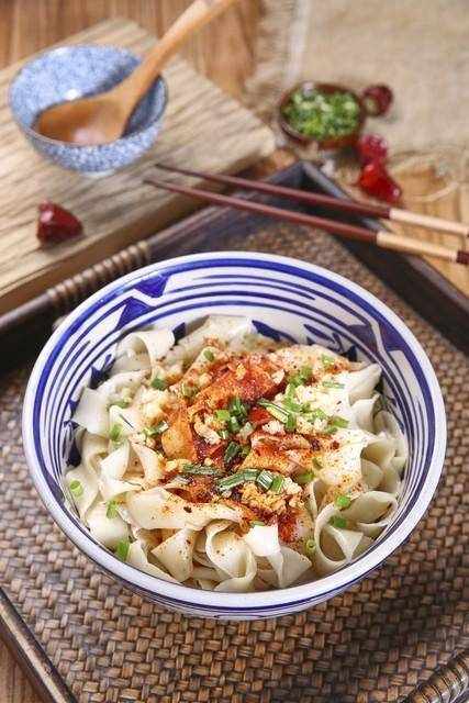 油潑面是陜西傳統的特色面食之一,起源於明代,油潑面的主要味道分為有鮮香味、酸辣味、香辣味。主要食材為面條、油菜、花生米、蔥花碎、辣椒面等,口味可更根據個人的口味調至喜歡的味道。油潑面的制作方法比較方便且普通,但是味道確實一絕,制作油潑面首先需要將手工制作好的面條在開水中煮熟後放到碗中,過一遍清水可以使面條更加勁道,隨後可將準備好的蔥花碎、花椒粉、花生米等配料倒入碗中,最後用燒的滾燙的油澆在上面的醬料上,使油的香味與調料的香味混合起來,形成一道美味的美食。也可另外加入臘汁肉、青椒土豆絲、青椒雞蛋、西紅柿雞蛋等一起食用。