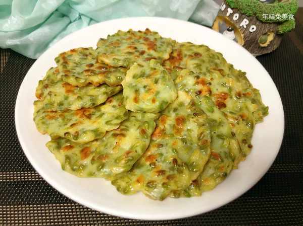 (4)電餅鐺倒油預熱,舀入一勺槐花糊再用鏟子按薄整理成圓餅,煎至一面凝固,另一面呈金黃色,翻面再稍微煎一下就可以盛出裝盤瞭
