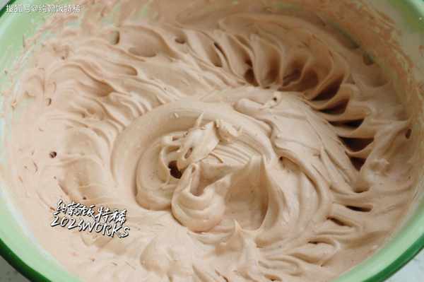 7:150克淡奶油+20克細砂糖,攪打至出現紋路後倒入涼透的甘納許(上一步做好的),打發至硬性狀態,差不多8分發的樣子,裝進裱花袋備用。