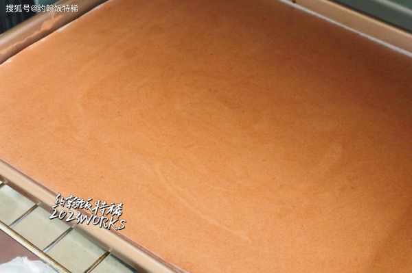 5:烤箱150度提前預熱10分鐘,將蛋糕糊倒進28*28的烤盤裡,鋪平整後震幾下烤盤,放進烤箱中層,150度烤20分鐘,取出放涼備用。