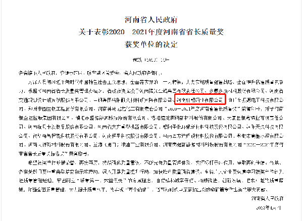 河南省省長質量獎,是河南省人民政府為貫徹落實科學發展觀、大力實施質量興省戰略、提高質量總體水平、促進產業振興而設置的最高質量榮譽。