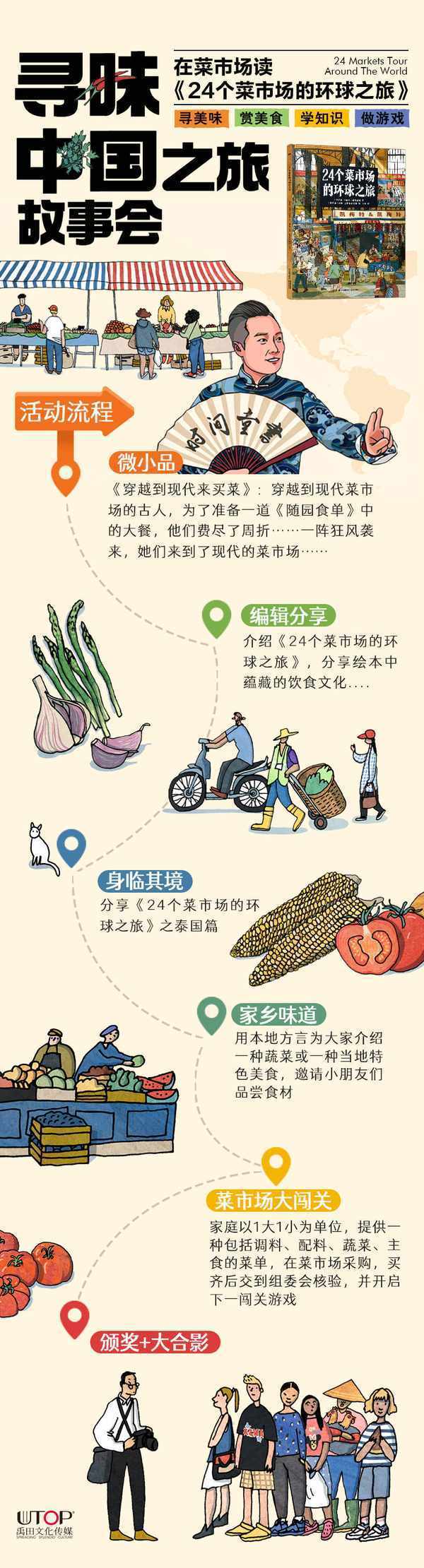 “師傅,八角香料在哪裡呢?”“我也要同款八角。”;“媽媽,我找到芒果啦,趕緊給我秤點吧!”……4月22日,由禹田文化傳媒與時間童書館合作主辦的“尋味中國——在菜市場讀《24個菜市場的環球之旅》”主題故事會在北京市昌平區天通苑太平興園菜市場熱鬧開場,傢長與孩子進入菜市場挑選食材,切身體驗“尋寶”遊戲。