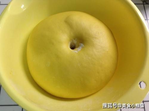 5、發好之後,手指沾粉伸入看看是否充分發酵。沒有回彈就是發好瞭。