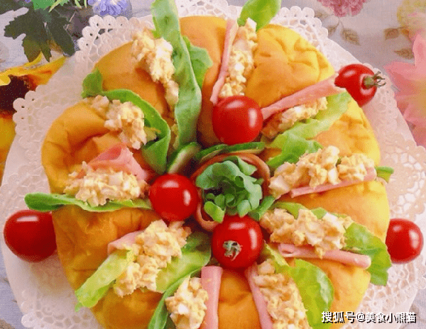 這款手撕三明治面包除瞭美味之外,非常適合利用假日和朋友、傢族們一起制作同樂的歡樂面包,將面包做成花環狀,把喜歡的食材夾入裝飾即可。
