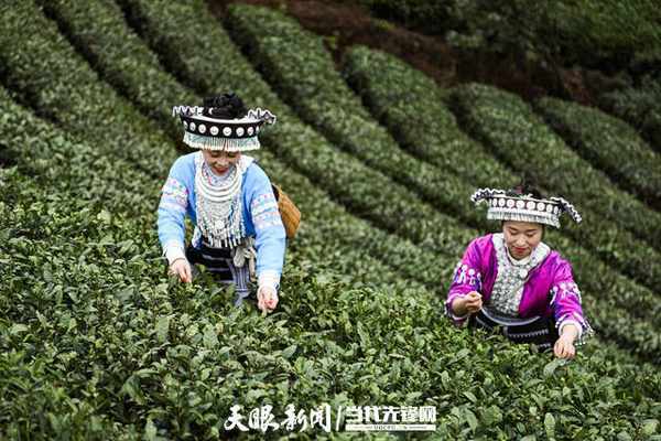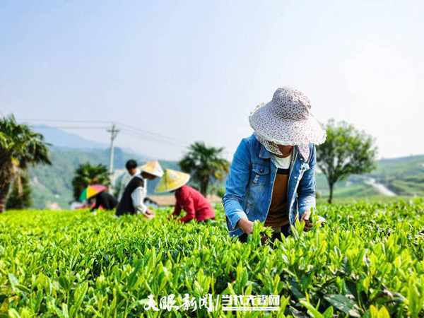 時下,走進貴定縣雲霧鎮,滿山疊翠,生機盎然,10.8萬畝茶園內滿是勤勞的采茶身影。