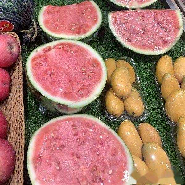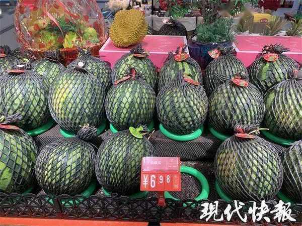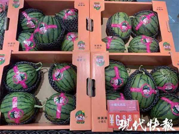在秦淮區永樂路上的一傢連鎖商超內,入口處擺滿瞭圓滾滾的麒麟西瓜,價格為 6.98 元一斤,果切區還有對半切開的西瓜。“都是剛切出來的,很新鮮,一切就炸。”有市民挑選瞭半個麒麟西瓜,稱重為 4 斤左右,價格是 28.1 元。工作人員說,這些麒麟瓜產自海南,個頭較大,如果吃不下,可以買旁邊產自山東的“小糖丸” 西瓜。上周要八九元一斤,這兩天降到 6.98 元一斤,皮薄汁多,幾乎隻有巴掌大,很受大傢的歡迎。