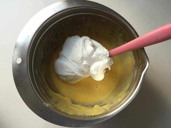 3、蛋白分三次與蛋黃糊翻拌混合均勻