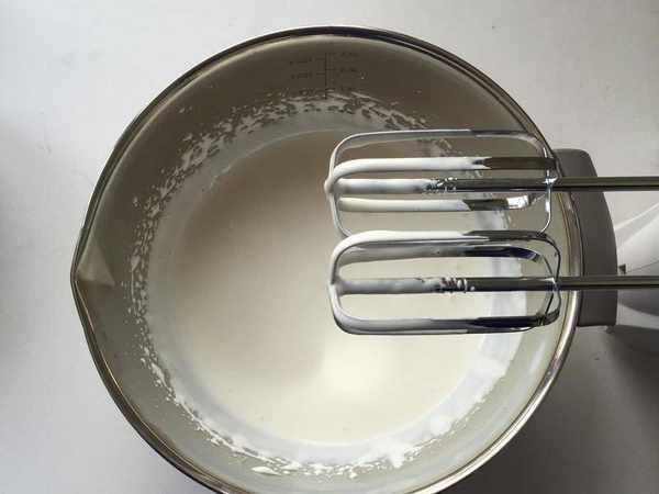 8、淡奶油中加糖粉和朗姆酒打到七成發,能保持紋路的程度