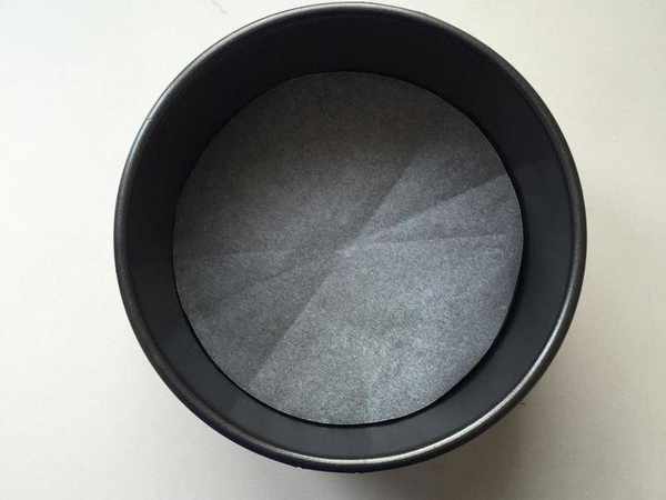 4、蛋糕糊入模具震模入烤箱上下管145度,中下層烤55分鐘。出爐後在灶臺上30厘米高震模馬上倒扣在晾網上放涼脫模。切兩片小於6寸模具蛋糕片備用