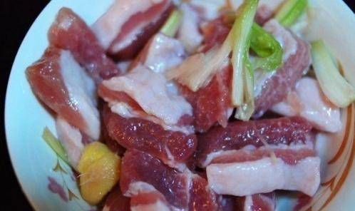 第一步:先把買來的肉洗幹凈,洗幹凈後,把肉撈出來放在幹凈的碗裡,放點料酒和鹽把肉醃一會兒,去掉肉的腥味。脆肉會更香,口感也會提升。肉醃30分鐘左右,這樣效果會更好,味道也會更鮮美。