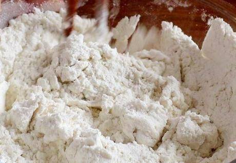 制作過程:第一步,在面粉中加入鹽、泡打粉、椒鹽粉,用筷子攪拌均勻,然後分批加入少許水,直接用筷子攪拌成粘稠的面團;