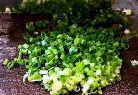 第三步,將韭菜清洗幹凈,去根後,將韭菜切成蔥花,放入發酵好的面團中,用面團包起來。面團準備好後,就可以開始做煎餅瞭;