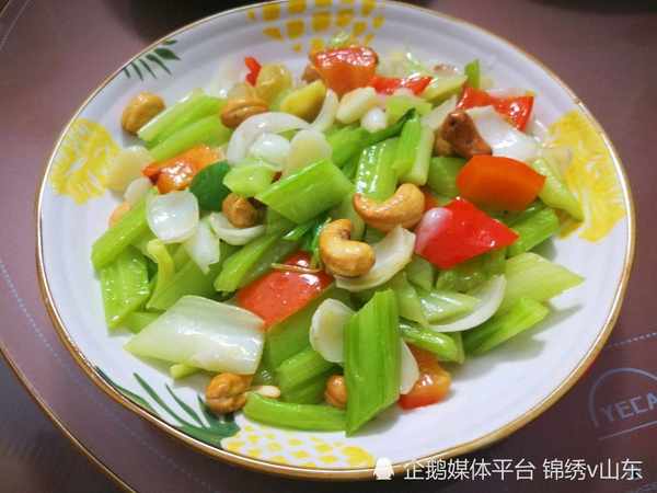百合50g 腰果50g 西芹100g 胡蘿卜50g 鹽1/4小勺 砂糖1/4小勺