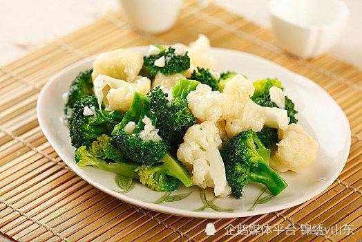做法:1.西藍花、菜花擇洗幹凈,掰成小朵,放入沸水中汆燙一分鐘,撈出;蒜拍破,切碎。