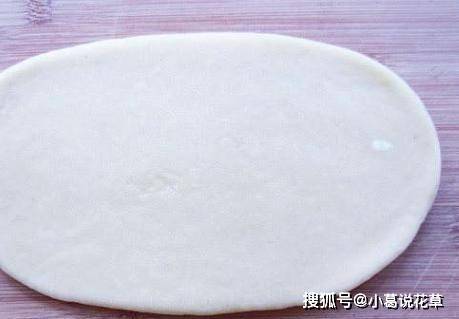 第三步,把面團揉成原來的兩倍大,然後放到案板上,手上抹點油,不用揉,直接壓面團,然後用搟面杖搟成餅狀。