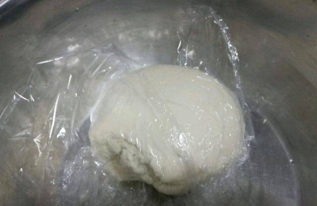 1、將適量的面粉倒入碗中,準備一大碗溫水。將溫水慢慢倒入面粉中。倒的時候用筷子攪拌成薄片狀,然後用手揉成光滑的面團。揉好。然後蓋上保鮮膜,放在溫暖的地方大約半小時變硬。