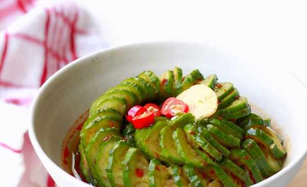 [所需菜品]:黃瓜2根,,白糖1勺,醋2勺,幹辣椒3個,生抽3勺,蒜末,