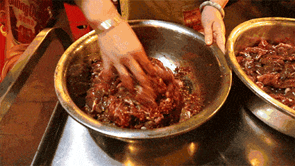 最後將藥明倒入鍋中炒熟,加入辣椒、香油等各種調料,入鍋快速煎炸,使藥明汁不揮發,充分保留藥明的原汁原味.牛肉辣椒刺激性強,清新溫和,是舉世無雙的美味。