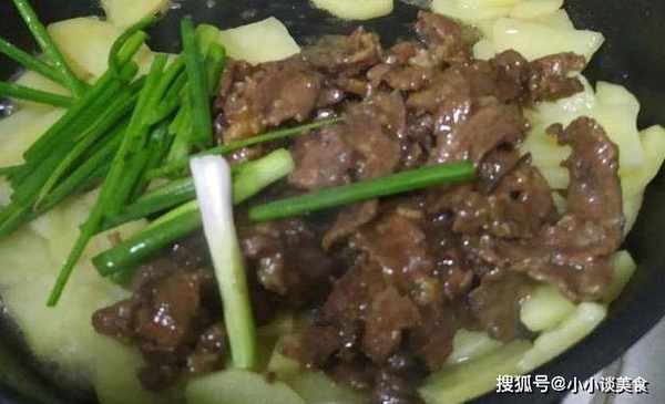 8.待湯快收幹時,加入牛肉一起炒至牛肉熟透,加入適量蔥花,加鹽調味,起鍋。美味的土豆炒牛肉就這樣做好瞭。土豆就這樣把它弄得很軟、很粘、很香。如果與牛肉搭配,會更入味,而且這道菜很好吃,特別適合小孩子食用。對於初學者來說也是一個很好的選擇。