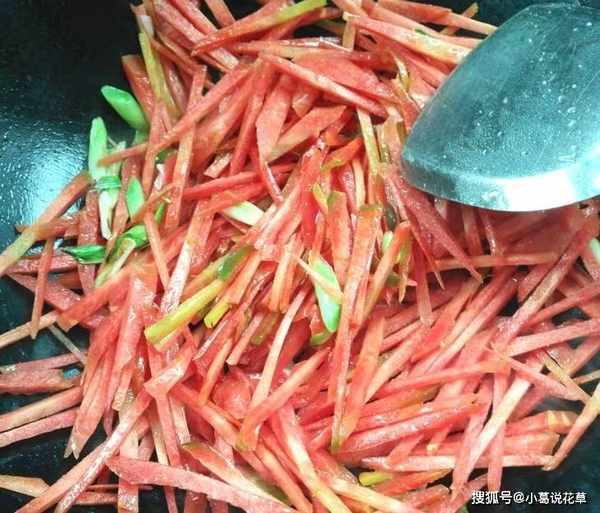 這時,鍋裡要放適量的菜籽油,等油溫高瞭,先放蒜頭小火炒出香味,然後放胡蘿卜邊,迅速。大蒜用大火炒約2分鐘。等胡蘿卜碎瞭,加少許鹽和雞湯,多炒幾下。胡蘿卜的氣味。