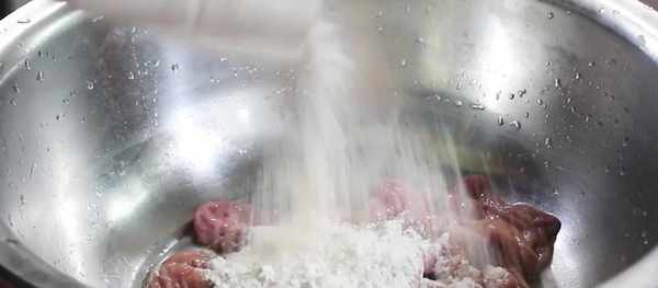 2,往牛粉腸中加入鹽或者是面粉,然後用手不停地抓勻,之後再用再用清水將表層的食鹽或者面粉清洗掉。