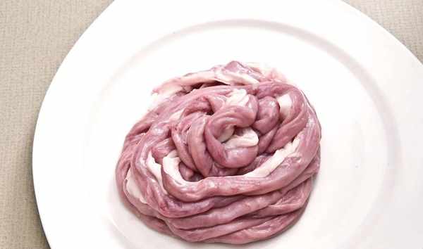 不管是豬大腸,還是豬小腸,牛大腸,還是牛小腸,在清洗的時候我們都要把腸子翻過來,將腸子內側的一些油脂清理幹凈。而對於牛粉腸來說,卻恰恰是相反的。