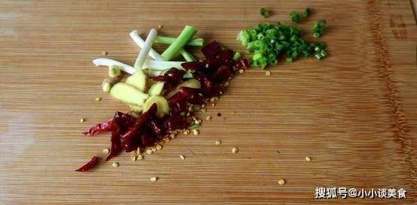 2.薑切絲,幹辣椒切段,蔥切段,留葉備用。