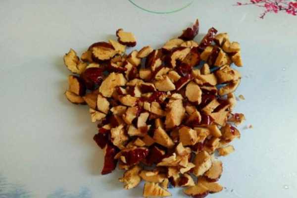 步驟3準備紅棗,留下八顆做裝飾用,剩下的全部去核切碎。