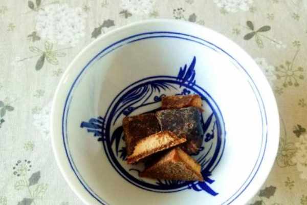 步驟1塊狀或者粉末狀的紅糖都可以,放在碗中,加100克熱水。