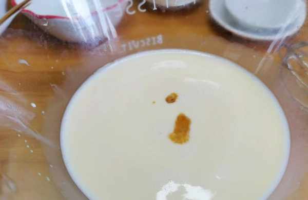 3、蛋液裡加入純牛奶和淡奶油混合均勻,再加入白糖攪打至融化,最後滴入幾滴香草精增加香氣去除蛋腥味,傢裡沒有的可以也放幾滴白醋,同樣可以去除些許蛋腥味;將所有食材混合均勻,蛋撻液就調好瞭。